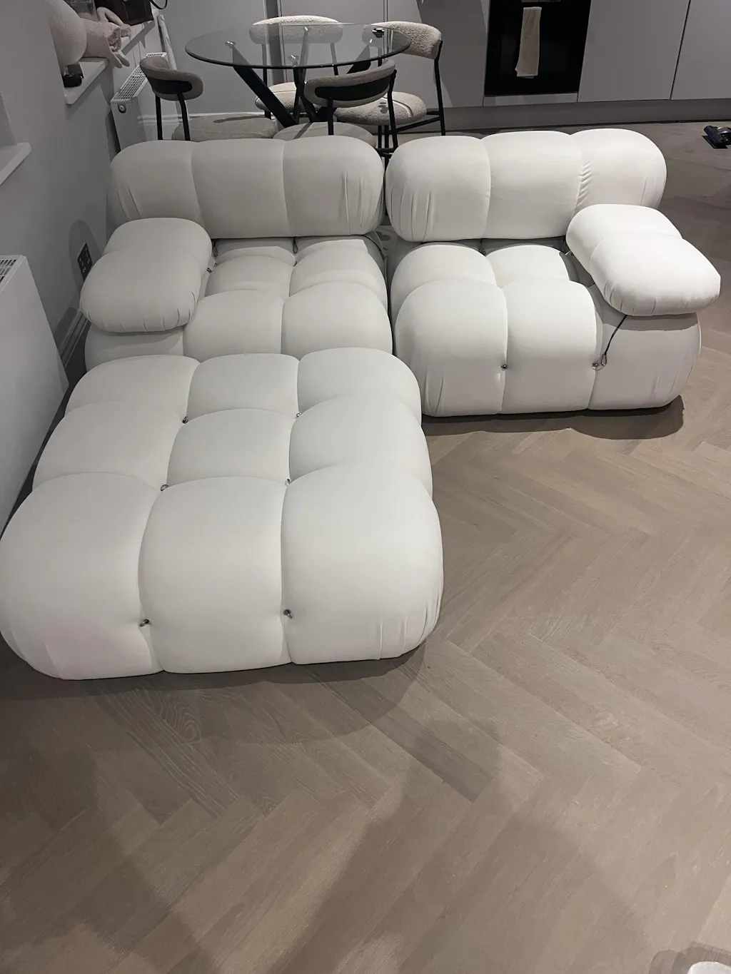 This sofa is perfect! I was torn between ordering white or black, but Im so glad I chose whiteit looks incredibly luxurious. The delivery drivers were fantastic, delivering right to my door and being both polite and helpful. I highly recommend this sofa and am seriously considering ordering another two seater now.