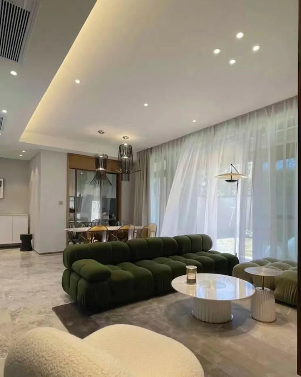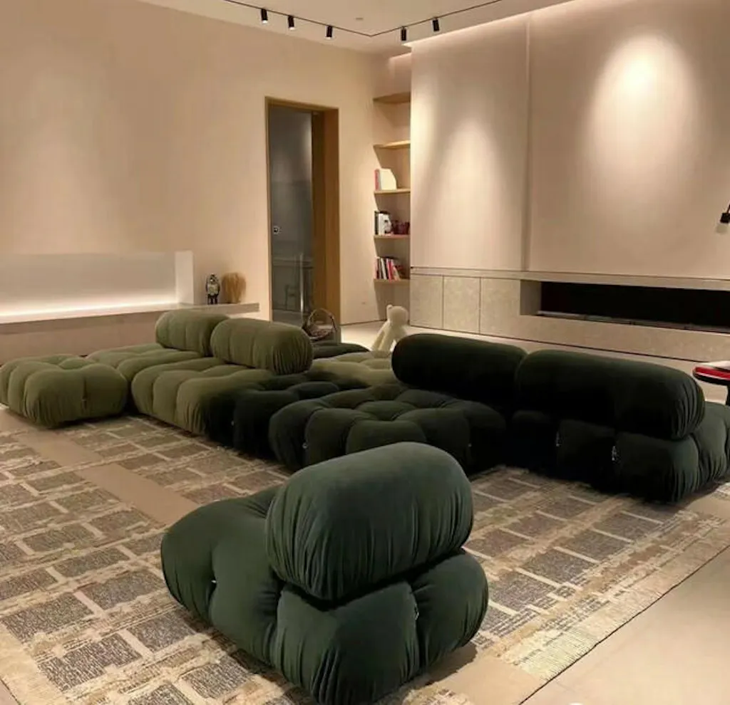 It looks stylish in the corner layout, but the velvet fabric requires constant maintenance. It's not as comfortable as I expected.